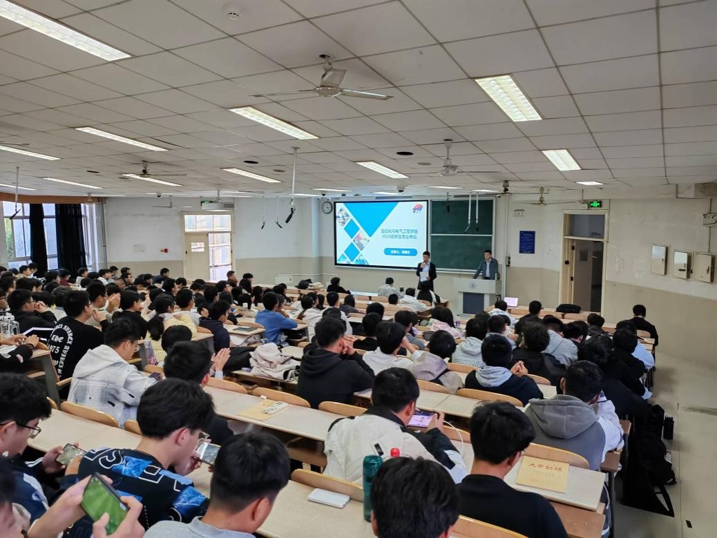 在结合求学、工作和成长经历基础上,吴新文高级工程师从专业领域、基础知识体系构建、未来工作领域与前景、专业技能培养与实践能力提升、行业发展动态与前沿技术以及学术道德与素养教育等6个层面,帮助学生树立了对专业发展前景的自信,阐述了学好专业课程的重要性,并勉励同学们一定要树立远大理想抱负。