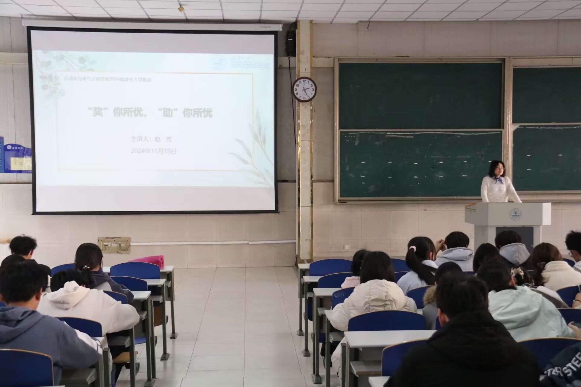 11月19日下午,我院资助工作负责人赵芳以《“奖”你所优,“助”你所忧》为题面向2024级新生开展入学教育,进行奖助政策宣传。
