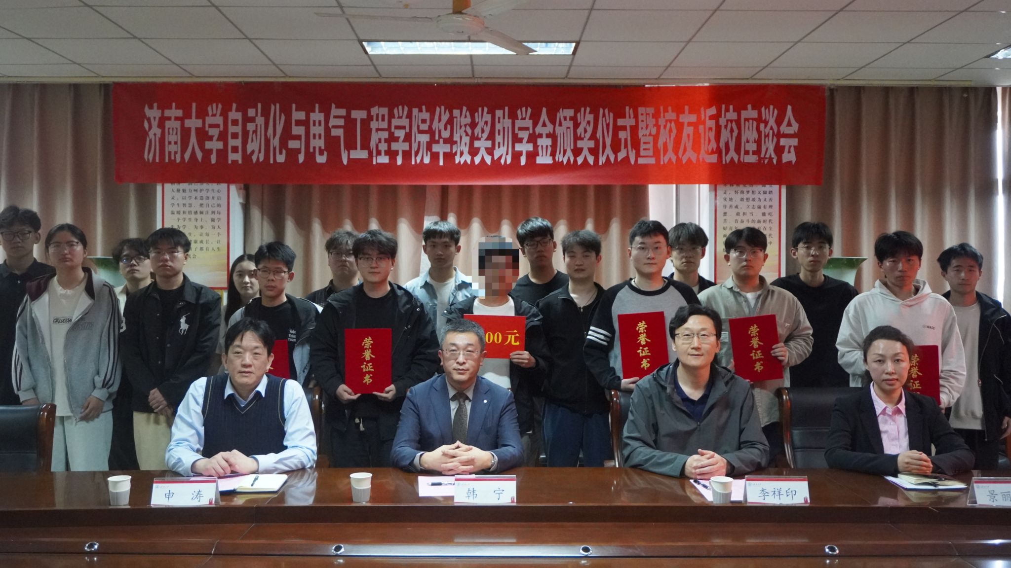 华骏奖助学金颁奖仪式暨校友返校座谈会在第一教学楼1108会议室顺利举行。学院党委书记李祥印、院长申涛、华骏海藻有限公司董事长、学院优秀校友韩宁、洗澡偷拍
