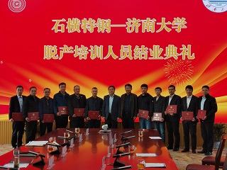 负责人,共同为“石横特钢班”培训人员颁发结业证书和优秀学员证书并合影留念。典礼仪式结束后,王志副校长一行,在石横特钢集团公司相关领导陪同下,参观考察了生产实习车间,并就进一步探索校企合作的领域和模式进行现场交流与探讨。