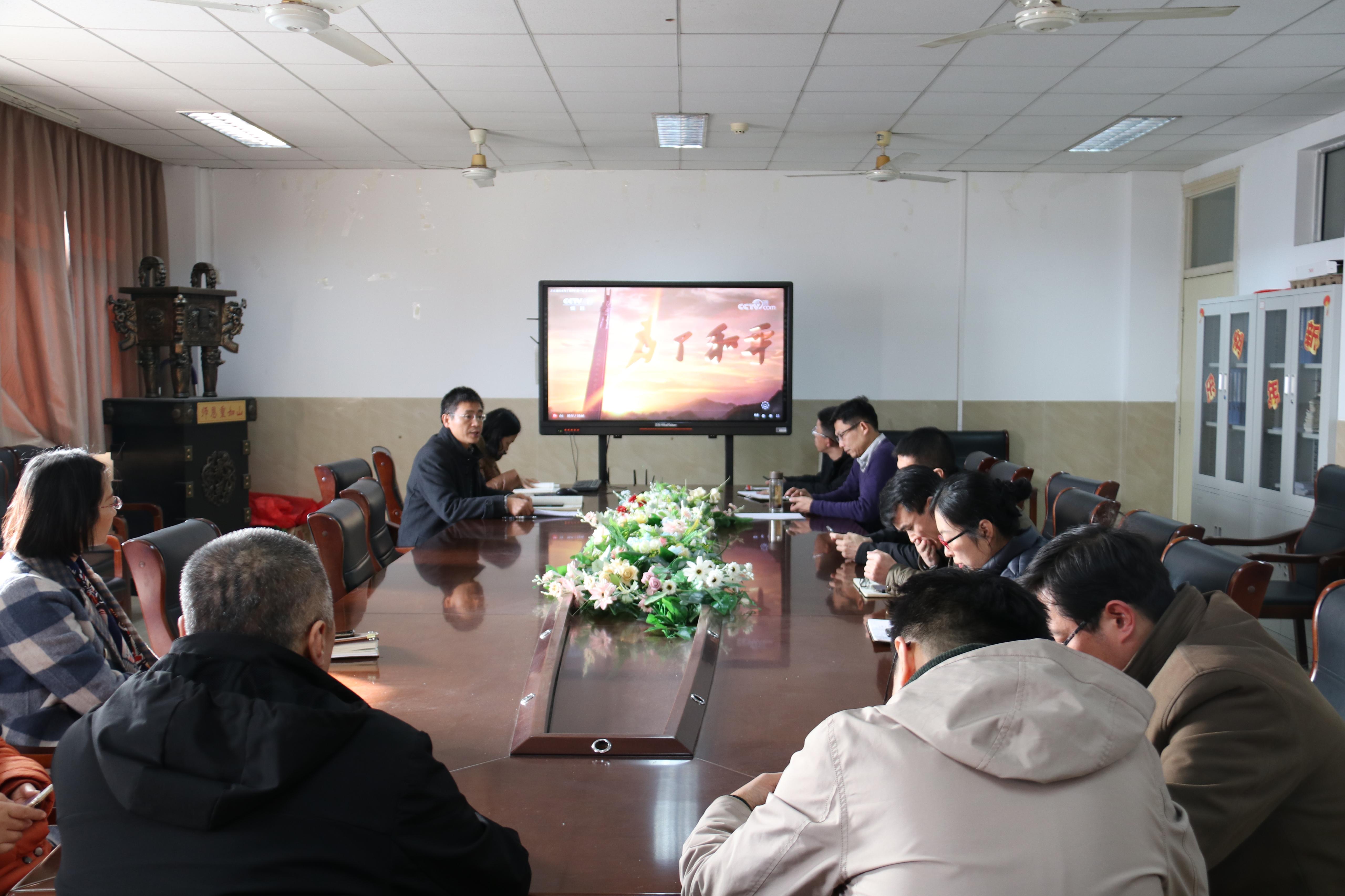 组织学院领导、各系中心主任、机关支部党员、各教工党支部书记、委员,全体学工人员和行政坐班人员,集体观看了大型电视纪录片《为了和平》第一集《正义担当》。