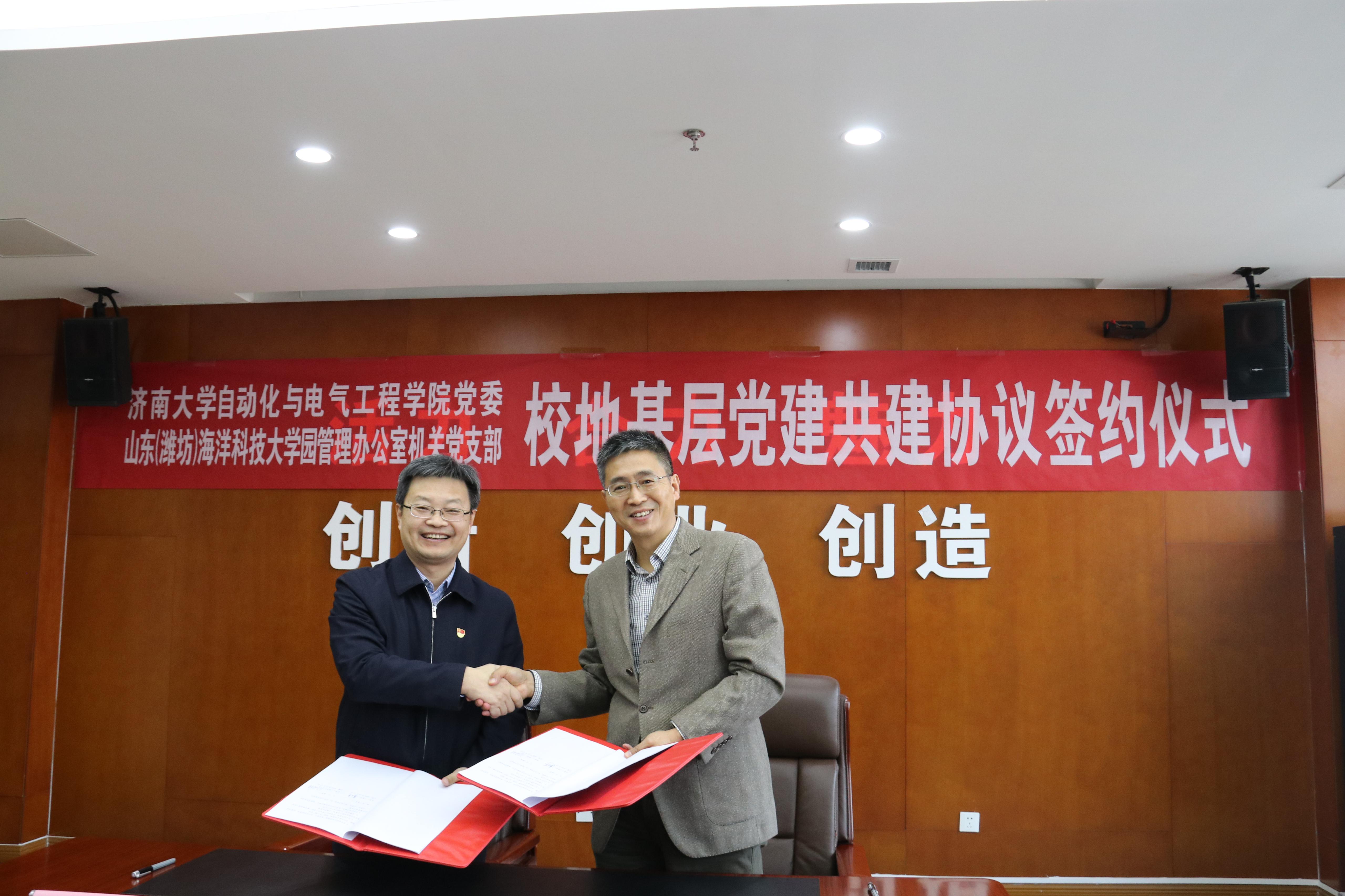 党委与山东(潍坊)海洋科技大学园管理办公室机关党支部校地基层党建共建签约仪式在山东(潍坊)公共实训基地举行。学校党委常委、副校长张勇,潍坊市滨海区管委会二级专员杜长明,洗澡偷拍
