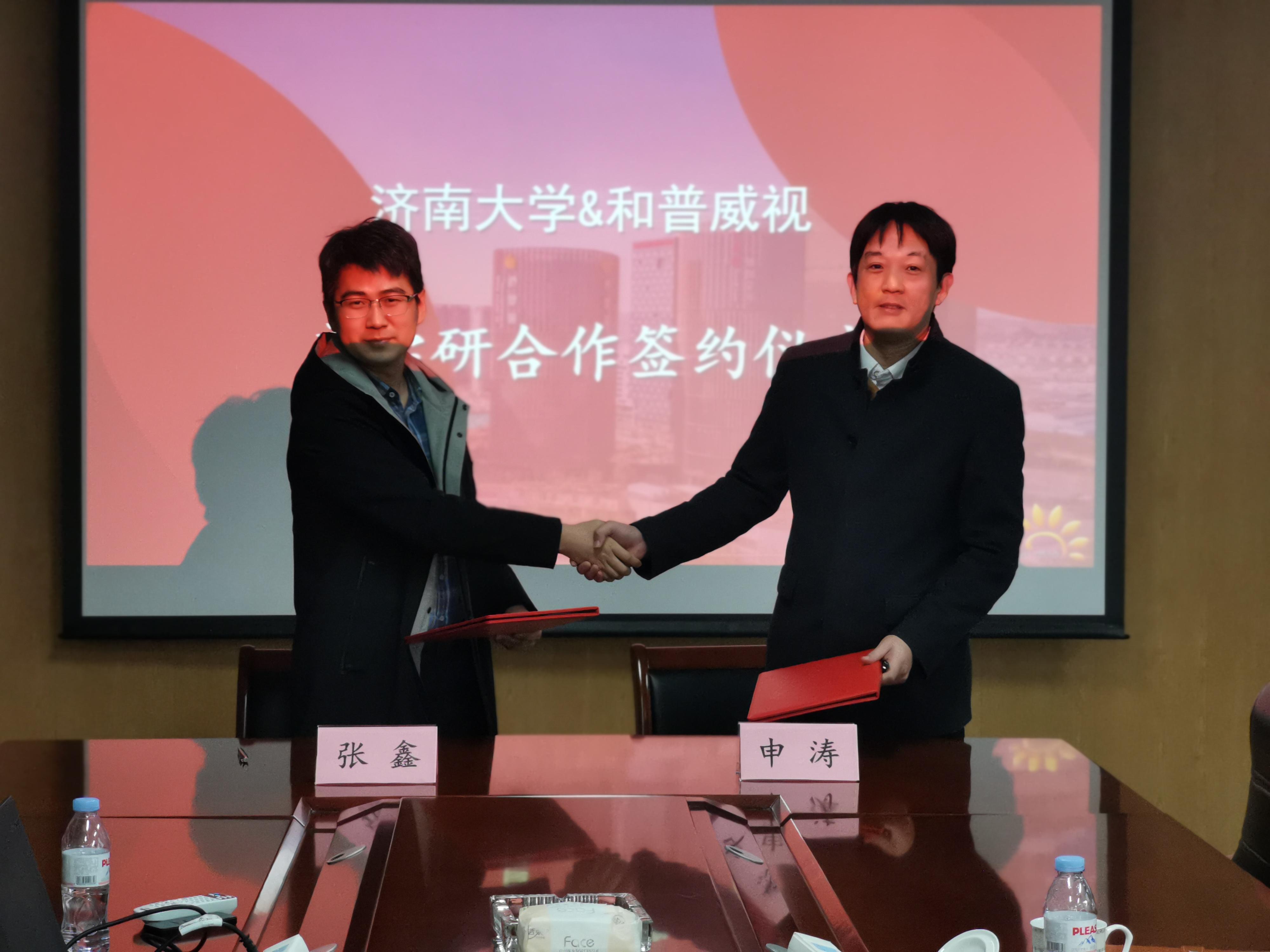 党委书记夏卫东,副院长申涛,电气传动教研中心主任龚宇雷一行走访济南和普威视光电技术有限公司,签署产学研合作协议,共建产学研联合基地并揭牌。济南和普威视光电技术有限公司民品事业部总经理张超越等相关领导会见了学院一行并陪同参观了公司展厅、研发部及生产车间,进行了座谈交流。