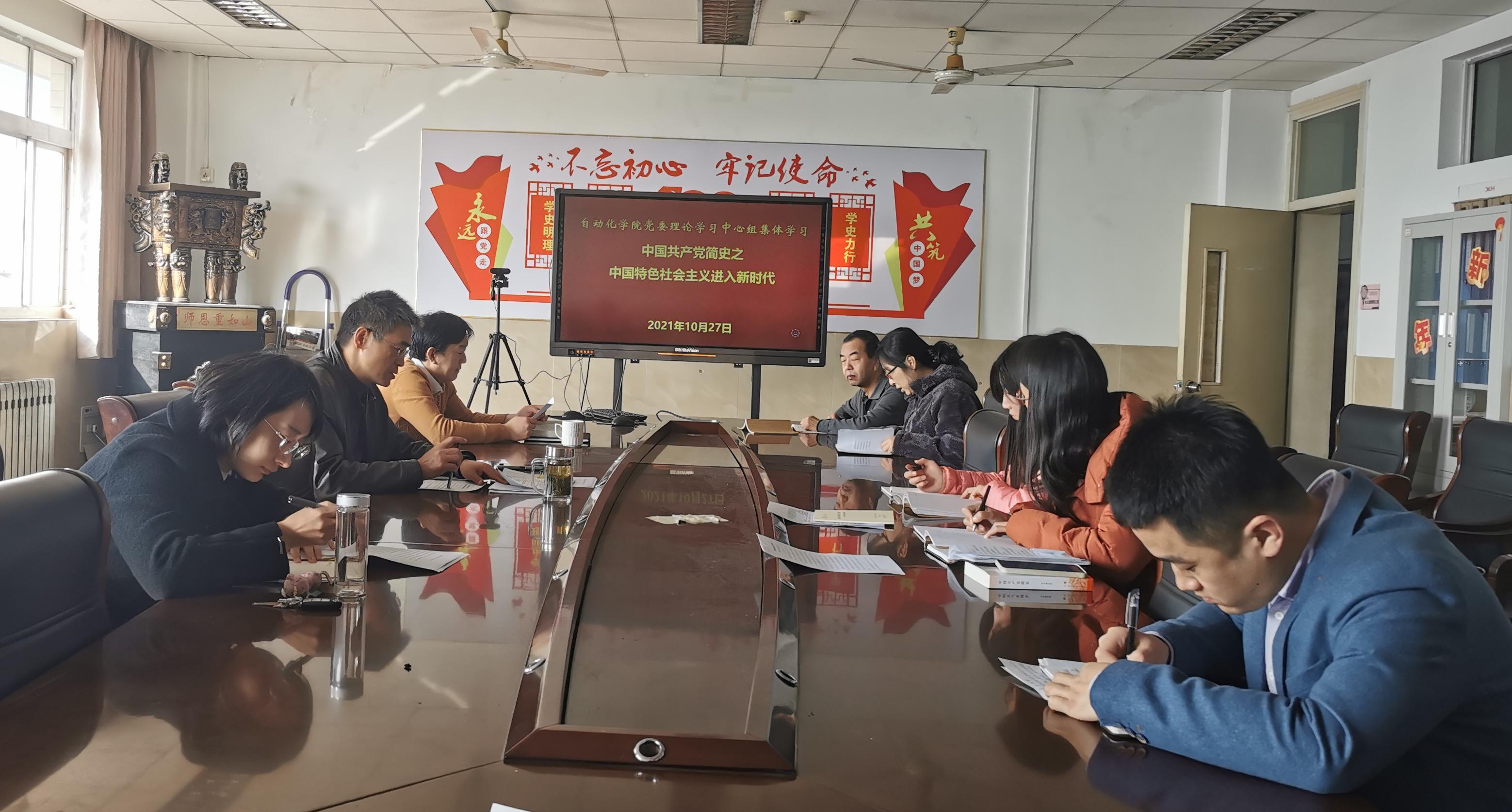 党委理论学习中心组开展了2021年下半年党史学习教育第三专题“中国特色社会主义进入新时代”的学习研讨。学院党委理论学习中心组全体成员、机关支部党员参加了学习研讨。