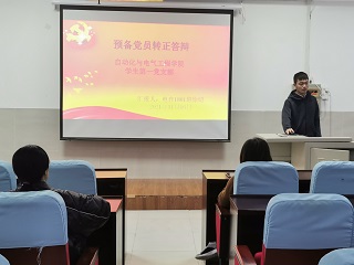 答辩会上,每位预备党员依次进行了PPT展示,汇报了自身在预备党员期间的个人表现情况,主要包括思想政治表现、学习工作情况、模范带头作用发挥情况,存在问题和不足以及今后努力的方向等。预备党员汇报结束后,评委结合他们在预备期内的个人表现进行了提问,并对他们提出了殷切期望和要求,希望他们在将来要更加严格的要求自己,真正起到党员模范带头作用,更好地服务同学。