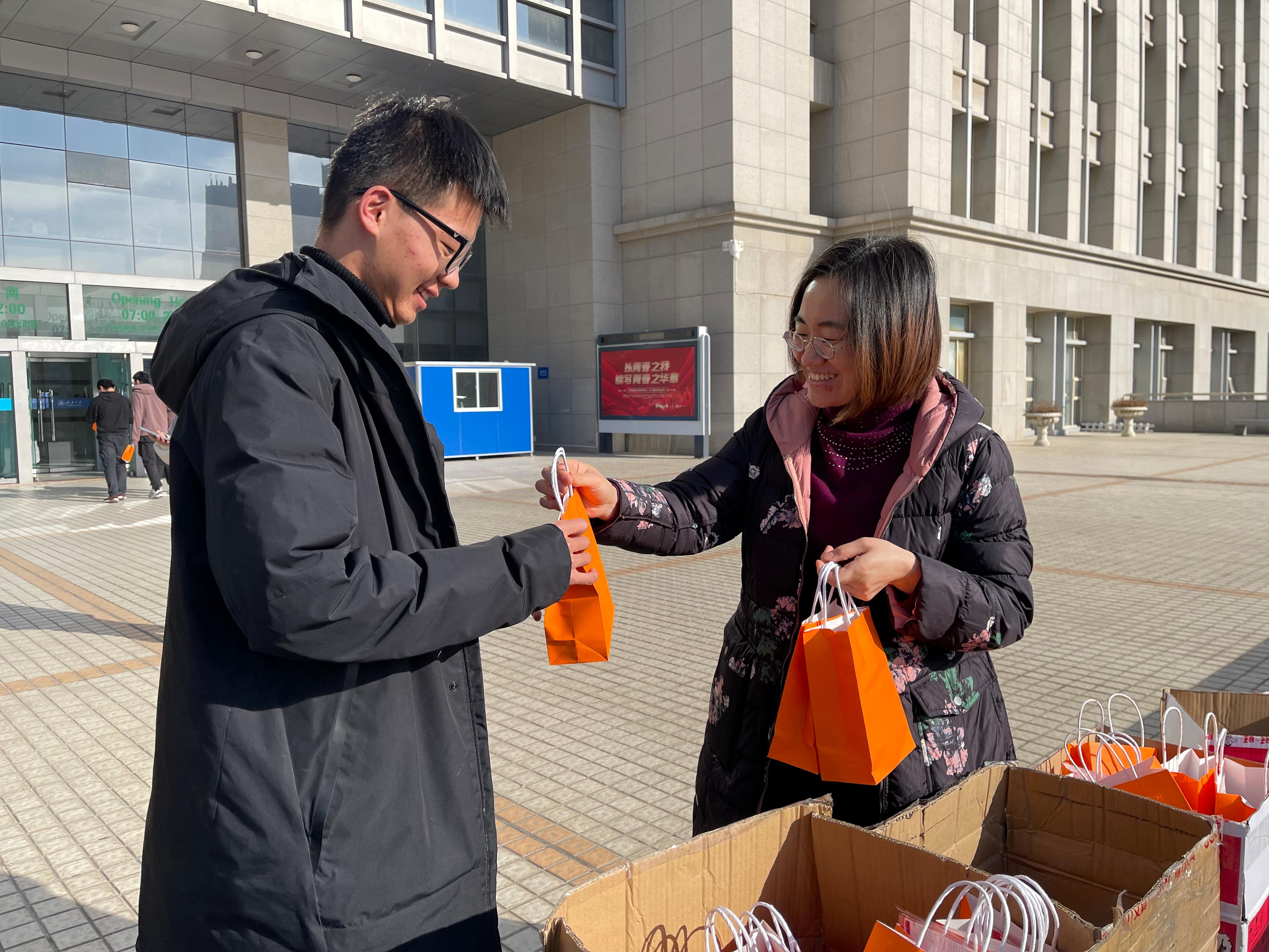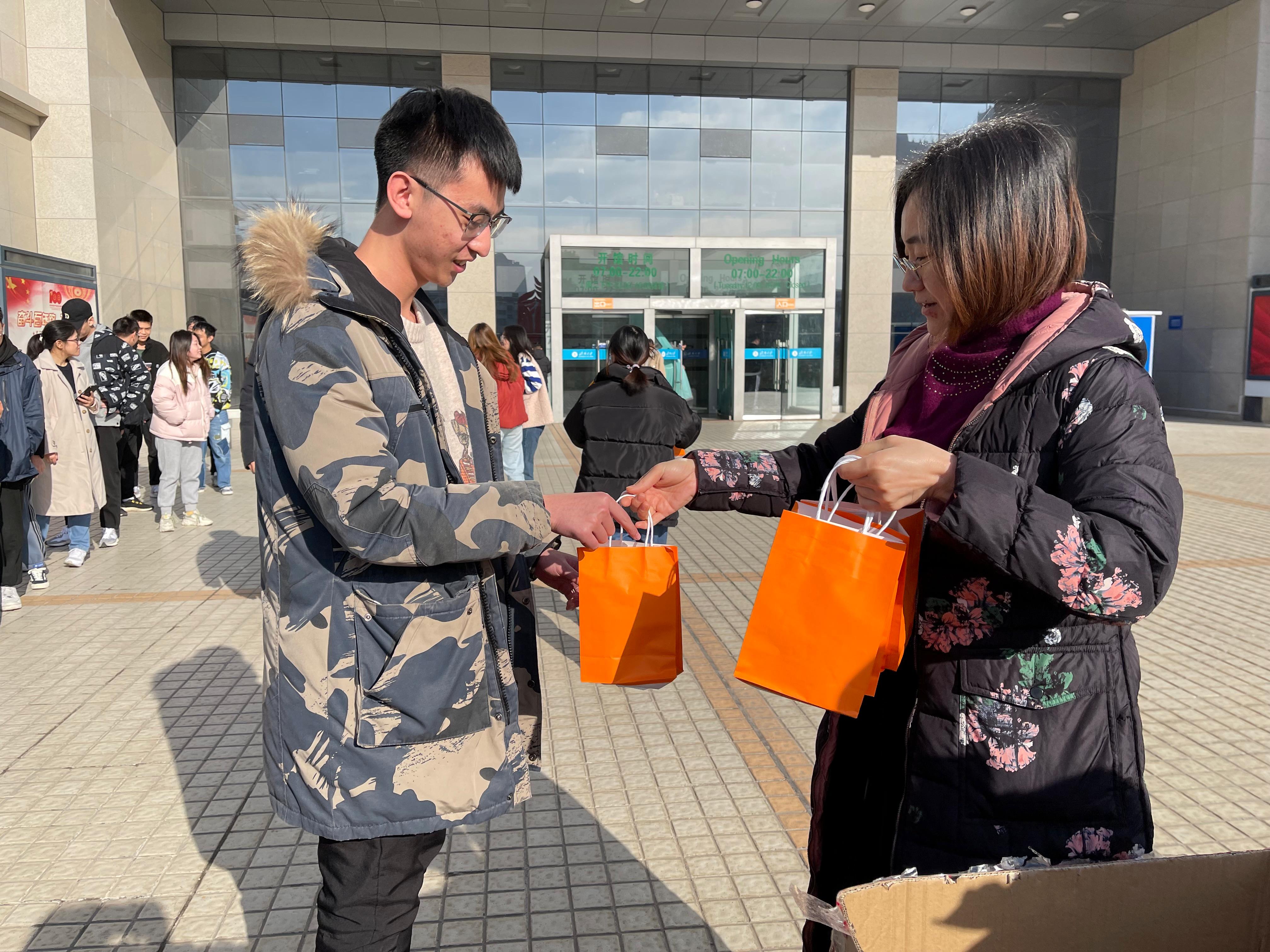 在图书馆前,举办“温暖寒冬 研途灿烂”主题活动。学院党委副书记、副院长陈春锋,2018级辅导员赵芳,2020级辅导员张敏男参加活动。