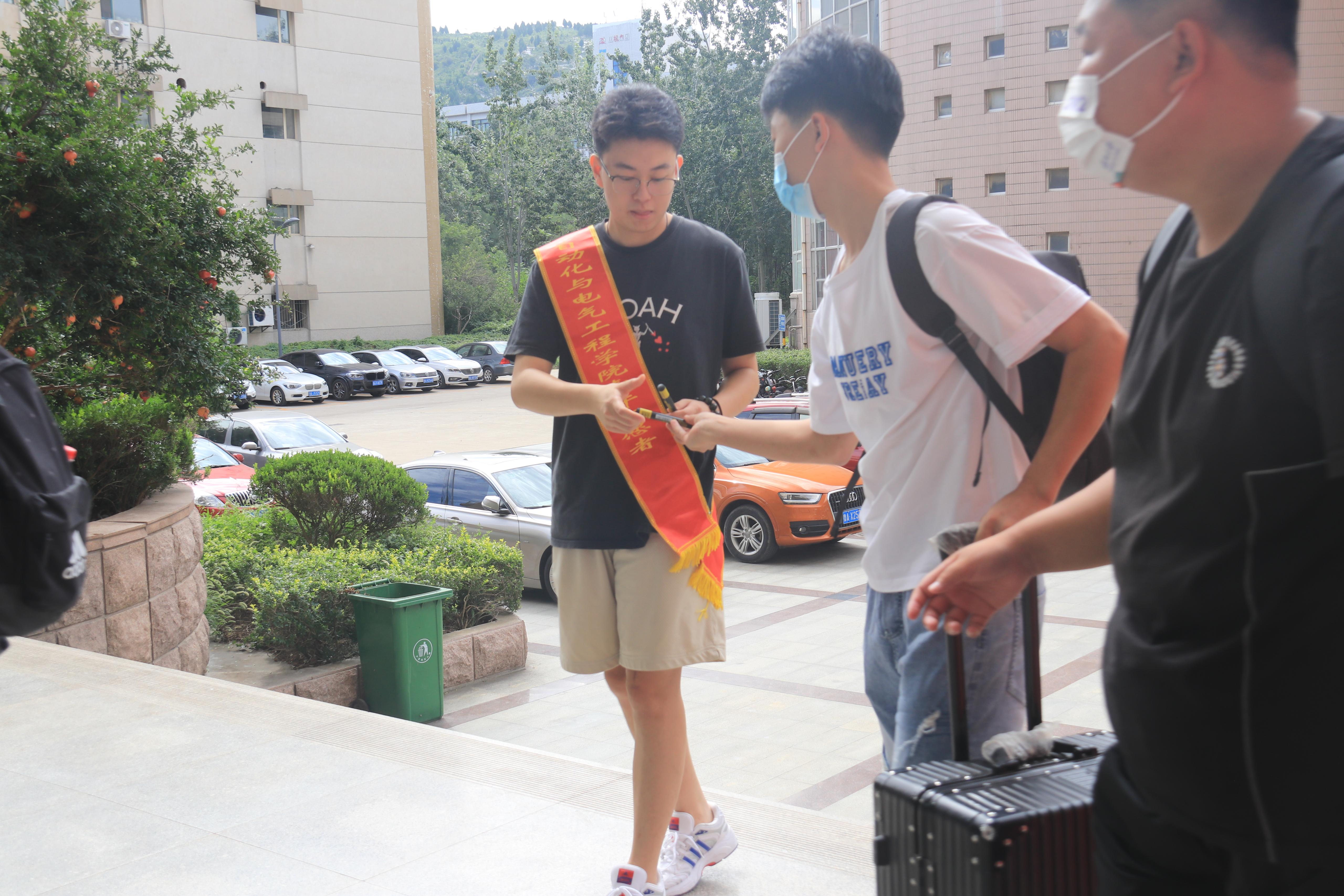 第一教学楼报道点等候,为迎新工作做好充分准备。教学楼楼底分配志愿者为报道新生看护行李,新生在欢迎标牌签下属于自己与济大的第一笔签名。每一位成员分工明确、认真负责,各位新生积极配合完成二维码报道、领取钥匙以及材料登记。