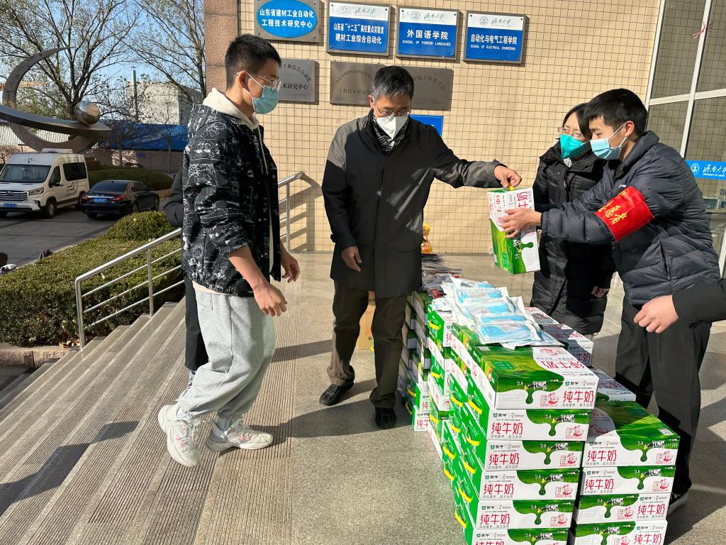 冬日暖阳,在第一教学楼门口,一箱箱牛奶、一包包口罩、一袋袋实用的文具袋,代表了学院对考研学子最诚挚的祝福。近期,受到济南疫情的影响,考研学生无法按照往常的计划进行学习,学院多措并举,认真细致地做好考研学子的后勤保障服务工作,为同学们答疑解惑,帮助同学们调适心态,鼓励大家轻松应考,发挥自己的最佳水平。