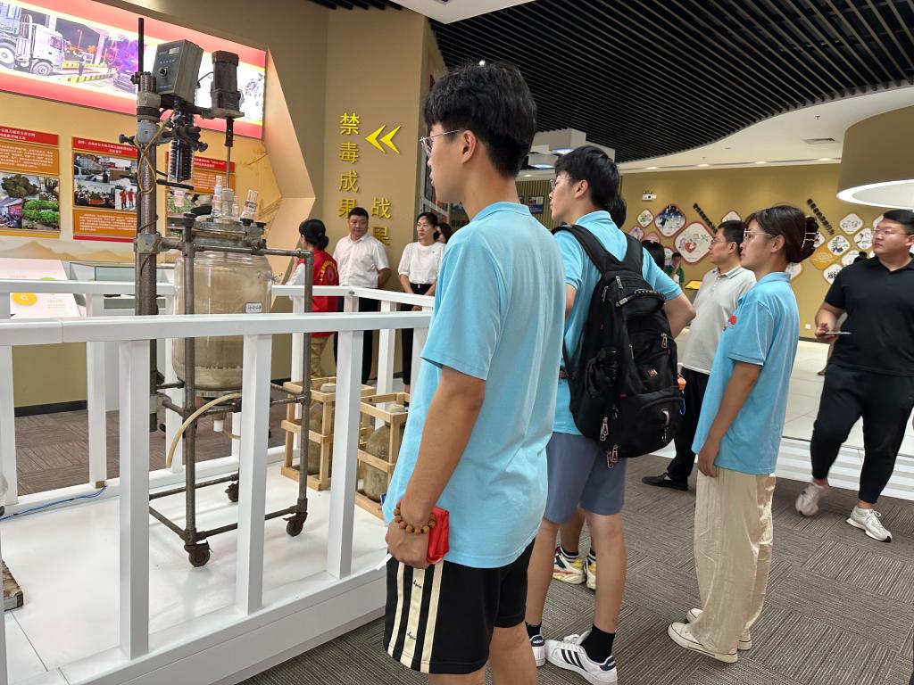 支部党员与共建单位党员代表来到山东省暨济南市禁毒预防教育展览馆。该展馆面积1200平方米,共分为序厅、百年禁毒史、毒情、毒品的危害、认识毒品、毒品在你我身边、禁毒成效、全民参与禁毒、尾厅等九个展厅,分别采用多媒体演示、实物展示、历史图片、互动体验等多种形式展示。百年禁毒史中的一幅幅图片介绍了从清朝到改革开放后我国不同社会时期毒品的发展历史和禁毒情况;毒品仿真模型、烟灯、烟枪等古代吸毒工具,展厅中央的一整套现代制度设备,让大家对毒品有了更直观的认识;除了各种实物,展厅里还有不少充满科技感的互动体验。警示片《山东毒情》里一个个震撼甚至惨烈的镜头,发人深省,引人深思;“禁毒成效”展厅里,民警缴获的枪支、弓弩、砍刀等武器,都在诉说着抓捕时的危险与惊心动魄。