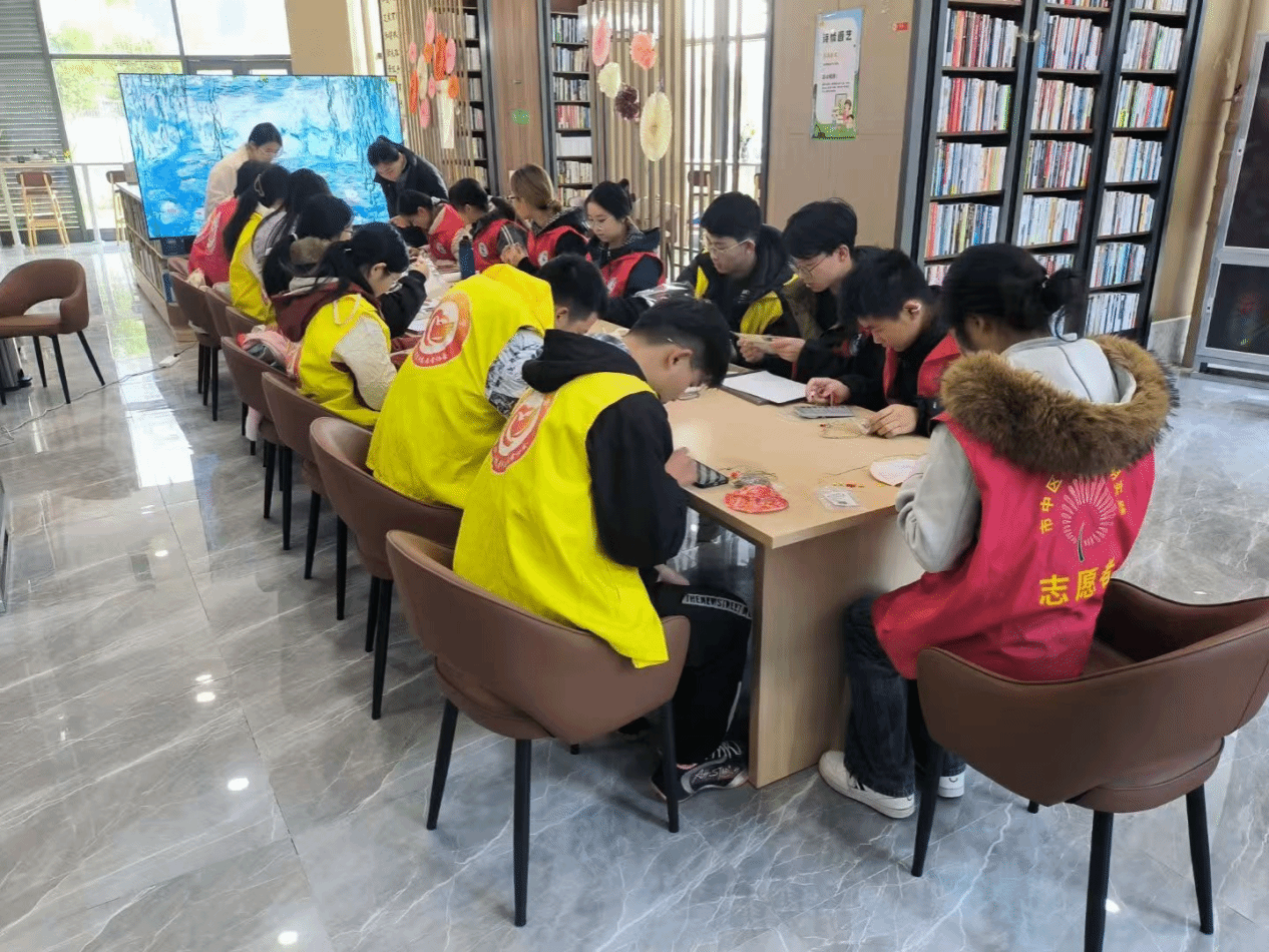 随后,志愿者们积极参与整理图书、制作非遗金箔画等活动,交流在实践中收获的思想,拓展其社会实践的深度与广度。在活动中,青年志愿者们展现了极高的热情和积极性,展现了新时代青年在团队协作中的责任担当和解决实际问题的能力。