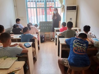 7月27日下午自动化与电气工程学院“迎风启航新征程,禁毒防艾永不停”社会实践队举办了“禁毒防艾 从小做起”活动,调研队给当地学生上关于禁毒防艾的课程,其目的是使学生了解有关毒品的一些基本知识,从而教育和引导学生从小要远离毒品,提高拒毒防毒意识。
