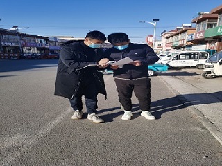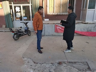 “电亮爱心”安全行社会实践队队员高嵩于2月25日在山东省烟台市蓬莱区刘家沟镇开展街头防火调研工作。