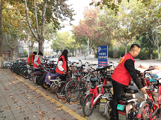 高度重视青年志愿服务活动,积极响应学校号召,特别是校园环境保护志愿服务活动。当天,志愿者队伍准时到达指定服务地点,志愿者乐于奉献,个个眼明手快,干劲十足。有的两人抬一辆,有的一人扛一辆,有的寻找遗漏在草坪上的旧车,有的积极寻找合适的摆放地点,大家忙碌的身影,俨然成了校园一道亮丽的风景线。经过整理,10教楼前自行车摆放得整齐有序,停车区域环境有了明显的改善。