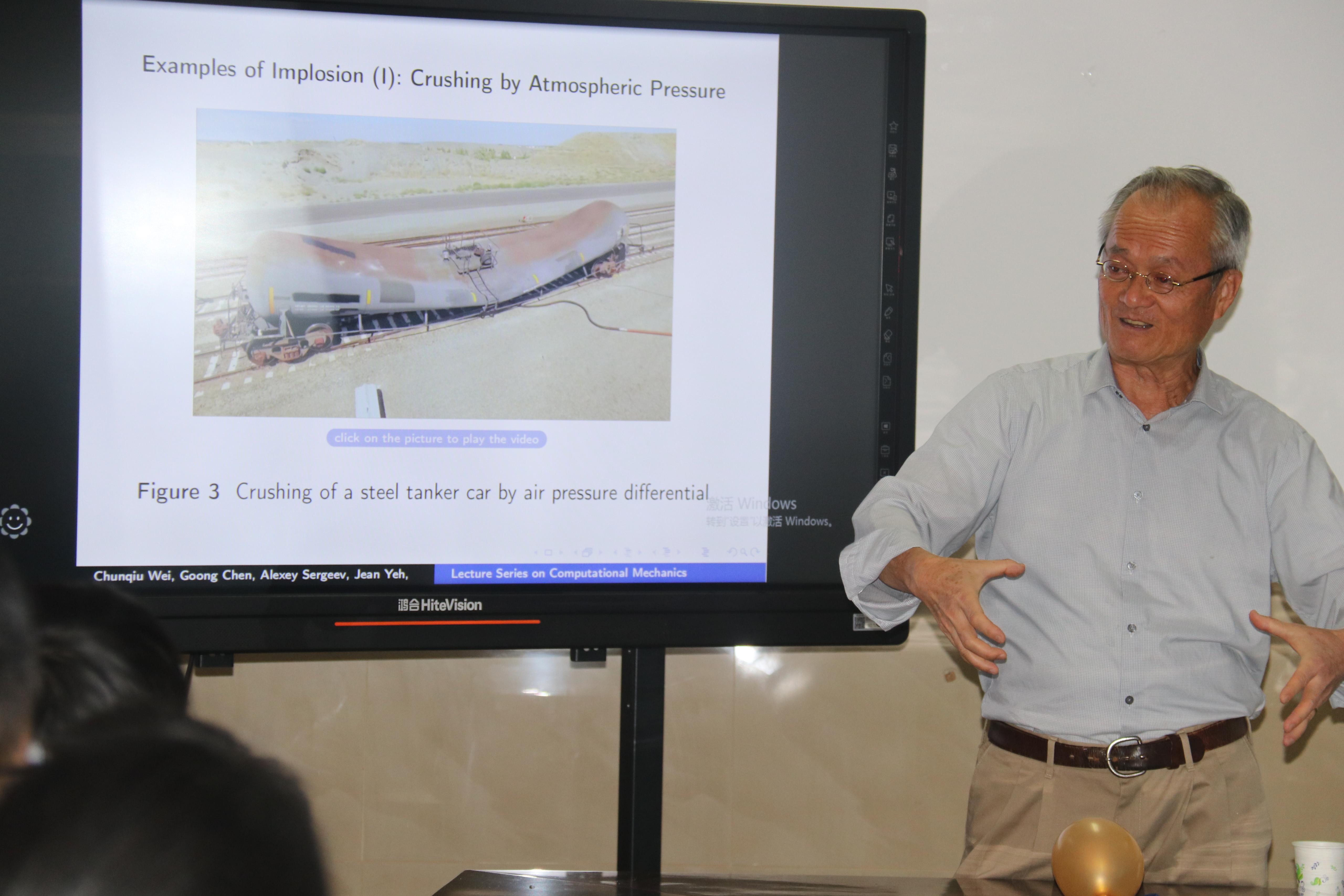 会上,Goong Chen教授做了题为“控制理论方法在工程方面的应用研究成果”学术报告并同与会人员做了深入的学术交流。随后,Goong Chen教授对内爆现象的产生和危害进行详细的介绍,并举例介绍了潜艇在深海中产生内爆现象的模拟仿真,这也是与阿根廷的学者合作取得的成果。紧接着, Goong Chen教授就所写的失踪马航MH370航班的文章进行了简单介绍,得出了马航MH370航班的坠海时的角度。Goong Chen教授还就美国大学的研究组织方式、研究生培养等情况做了介绍。最后,Goong Chen教授就学院师生提出的问题进行了一一解答。