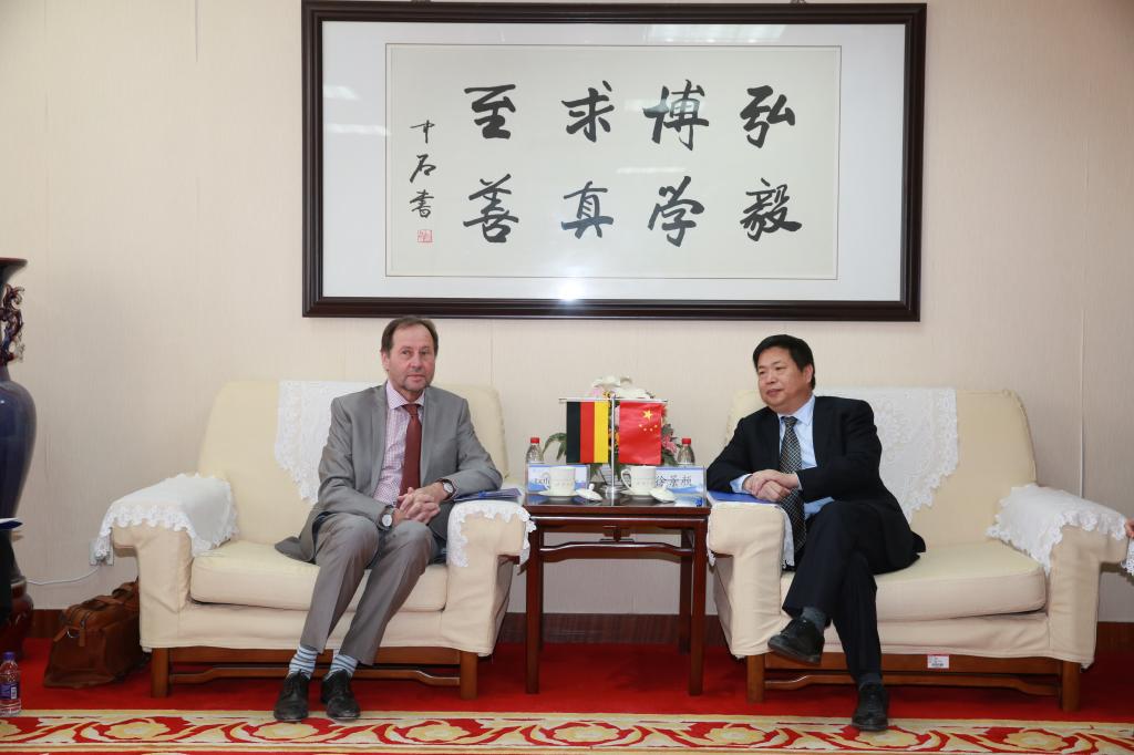 4月2日,德国比勒菲尔德应用技术大学(Fachhochschule Bielefeld University of Applied Sciences)副校长、机电与数理学院院长Lothar Budde教授依托我院受聘济南大学客座教授仪式举行。仪式之前,济南大学党委书记徐景颜,校长张士强,副校长王保贤会见Lothar Budde教授一行,学校办公室、国际合作与交流处、自动化与电气工程学院责人参加会见。张士强校长向Lothar Budde教授颁发了济南大学客座教授聘书,Lothar Budde教授感谢济南大学的邀请和信任,表示将认真履行客座教授义务,积极推动双方的全面合作。