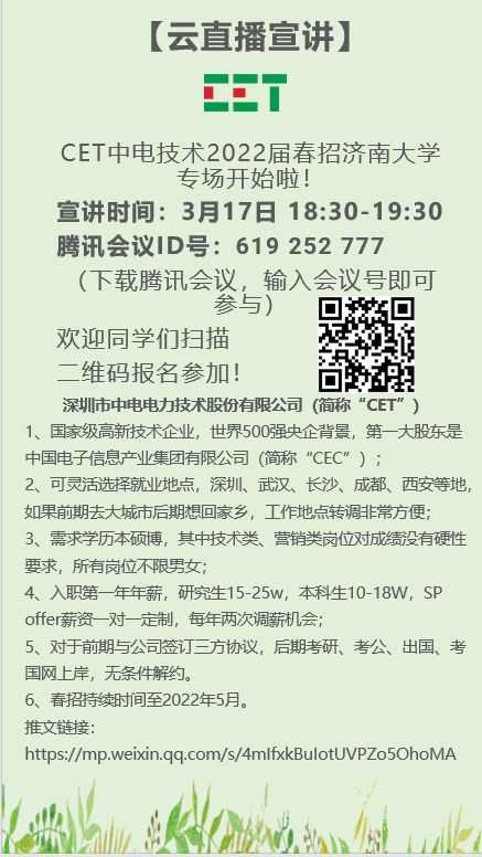 CET中电技术2022届春招济南大学专场开始啦!