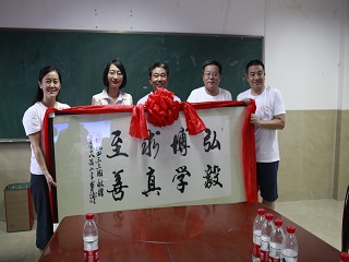 下午,同学们来到第一教学楼与自动化与电气工程学院的领导举行座谈,赵道会书记、陈春锋副书记代表自动化与电气工程学院对自9433班校友表示热烈欢迎和真诚祝福,对广大校友在不同岗位上取得的成绩表示祝贺。他们向校友们介绍了近年来学校及学院各方面的发展以及在教学、科研等方面取得的成绩,并表示校友是母校事业发展的基石,是最可信赖的力量,也是母校可持续发展的不竭动力。希望广大校友能时刻关心母校发展,继续发扬济南大学的优良传统,为母校增光添彩。同学们向学院捐赠了著名书法家李骏书写的“弘毅、博学、求真、至善”的校训。