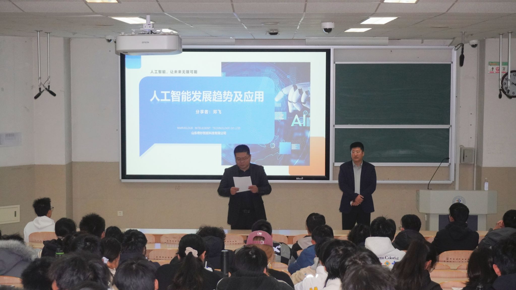 2025年11月25日下午,自动化与电气工程学院2025级“启航讲堂”第三讲在第十一教学楼顺利举行。圣泉集团、山东奇妙智能科技有限公司董事长郑飞受邀作为主讲嘉宾,为新生带来题为《人工智能发展趋势及应用》的专题报告。报告会由院长助理李猛主持。