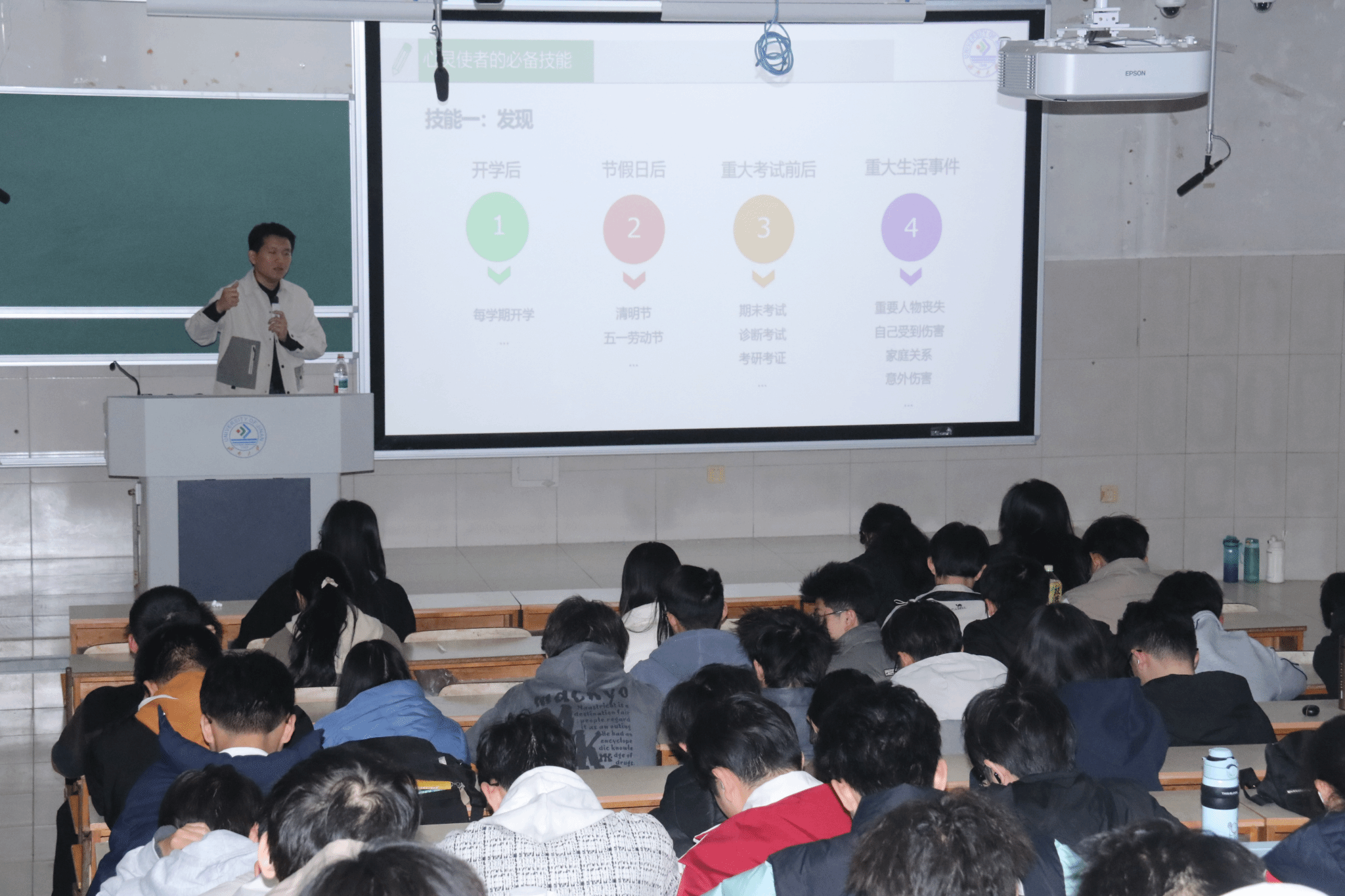 在心理危机的识别及应对环节,李传晓老师详细讲解了如何通过观察同学的言语、行为、情绪变化等,及时发现可能存在的心理危机,并介绍了一系列行之有效的干预方法和应对流程,如倾听陪伴、及时报告、转介专业机构等。