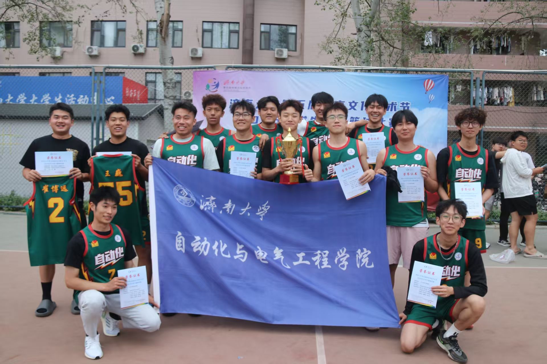 5月8日,济南大学“济大杯”篮球赛迎来一场备受瞩目的焦点对决,自动化与电气工程学院篮球队与材料科学与工程学院篮球队展开激烈比拼。最终,自动化与电气工程学院篮球队勇夺第五名,队员们在球场上展现出的拼搏精神和默契协作,赢得了现场观众的阵阵喝彩。