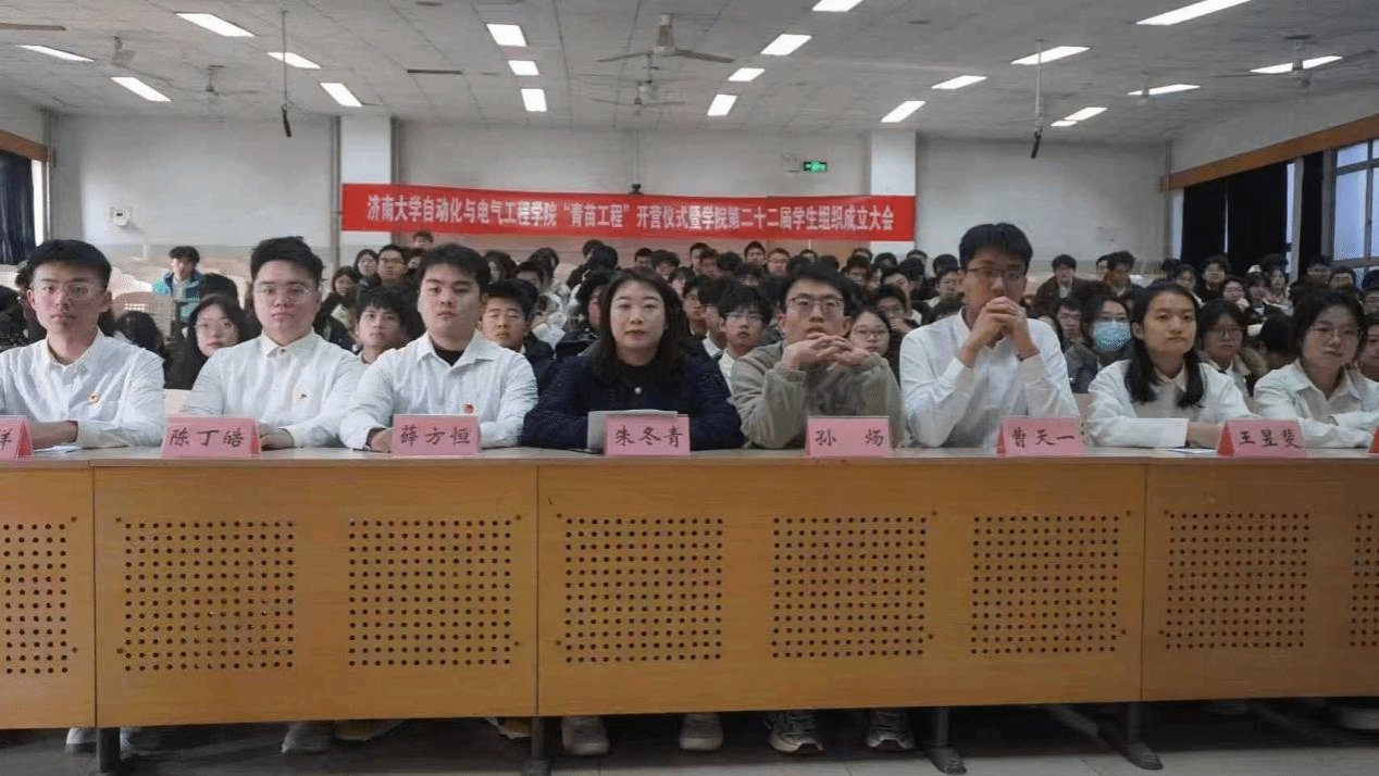 大会伊始,全体参会人员肃立奏唱国歌,庄重旋律凝聚起青春奋进的共识;随后共同观看短片《青春在拼搏奋斗中闪光》,鲜活的青春事迹激励在场学子以奋斗践行使命、以实干书写担当。会上,学院学生会主席团成员王昱斐宣读《济南大学自动化与电气工程学院“青苗工程”训练营实施方案》,明确训练营将围绕“政、科、志、文、学”五维砺才,辐射不同年级与群体,助力学生综合素养与核心能力全面跃升。