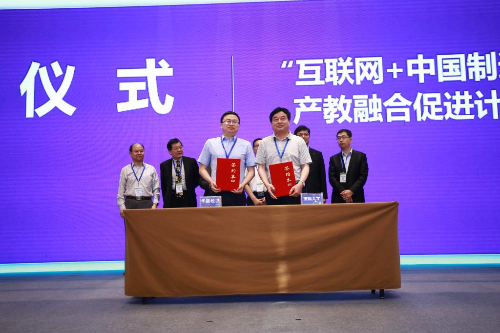 会议上,作为教育部“互联网+中国制造2025”产教融合促进计划第二批建设院校代表,王志副校长同北京华晟经世总裁郭炳宇在项目合作协议上正式签字。