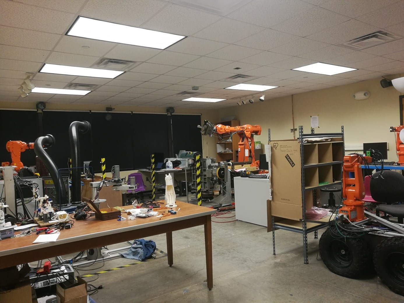 总体说,该校实验室科研条件较好,我所在的专业实验室,一个房间即有工业机器人数台,均为工业应用较广的ABB公司工业机器人,并配有相应的台式机和其他实验工具。
