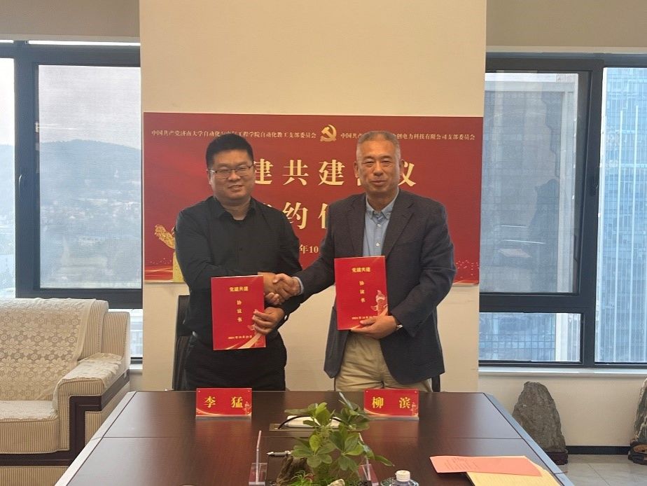 2024年10月29日,在济南荣耀合创电力科技有限公司,自动化教工党支部与济南荣耀合创电力科技有限公司党支部举行党建共建签约仪式。学院党委书记李祥印、院长申涛、自动化教工党支部书记李猛,荣耀合创公司总经理魏欣、副总经理王秀广、党支部书记柳滨等参加签约仪式。荣耀合创电力科技有限公司党支部书记柳滨主持签约仪式。